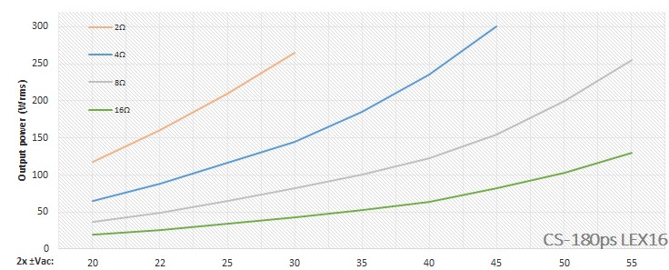 Plm. 300Wrms/4Ω, inkl. on-board Netzteil.