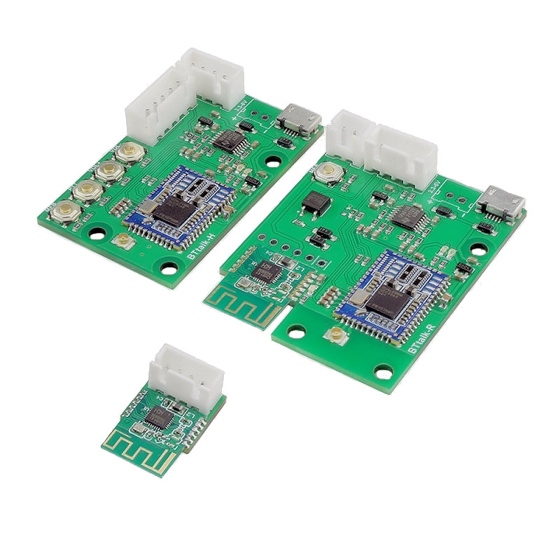 This is a full duplex bluetooth voice communication kit for 2 way radios. A wired headset is connected with the biggest board (TSA5003). Another board TSA5004 is connected with the 2 way radio. The smallest module is the wireless PTT button.