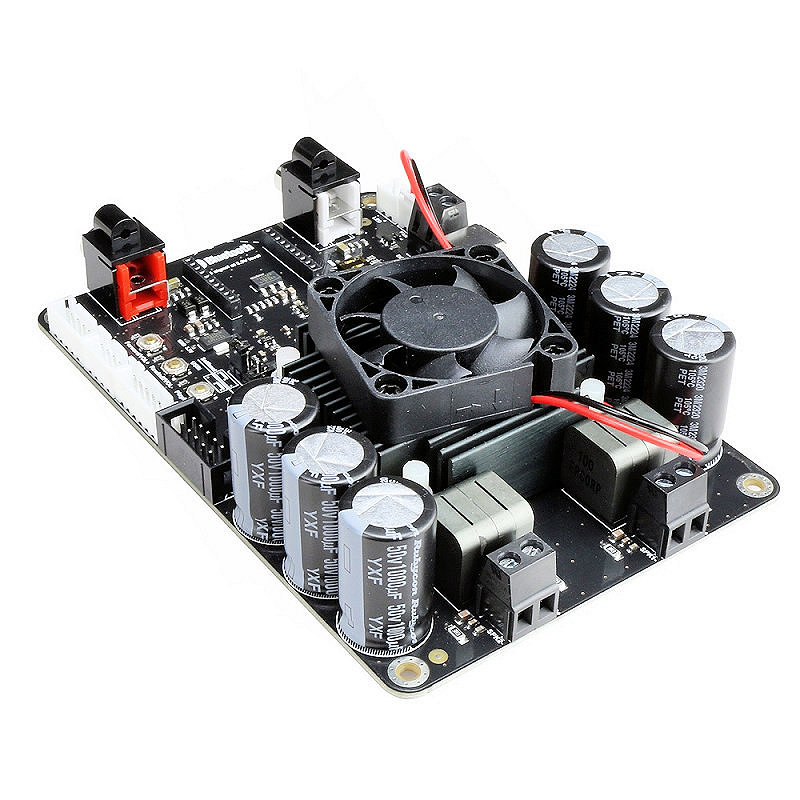 Class-D, DSP, DAC, Bluetooth, RCA, 2x100Wrms/3Ω/1%thd, 20Hz-20kHz, 90% eff.