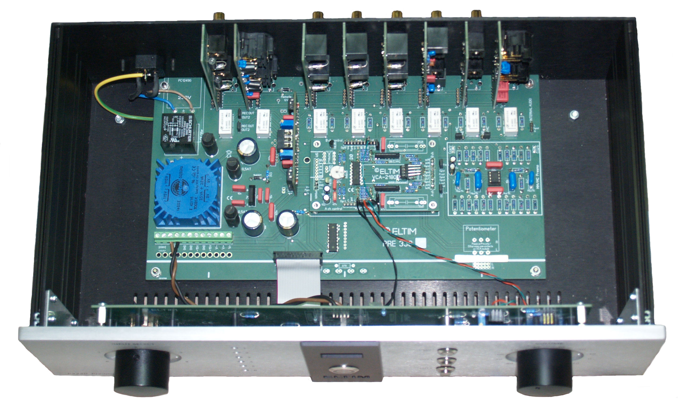 Standard it is a so called passive Preamplifier with electronic in/output switching function and a potentiometer volume control.