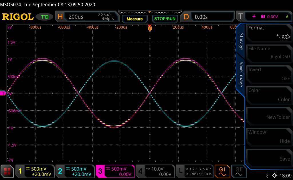 LinBout-1646 running at 1kHz/1V, 0º phase shift from input to + output.