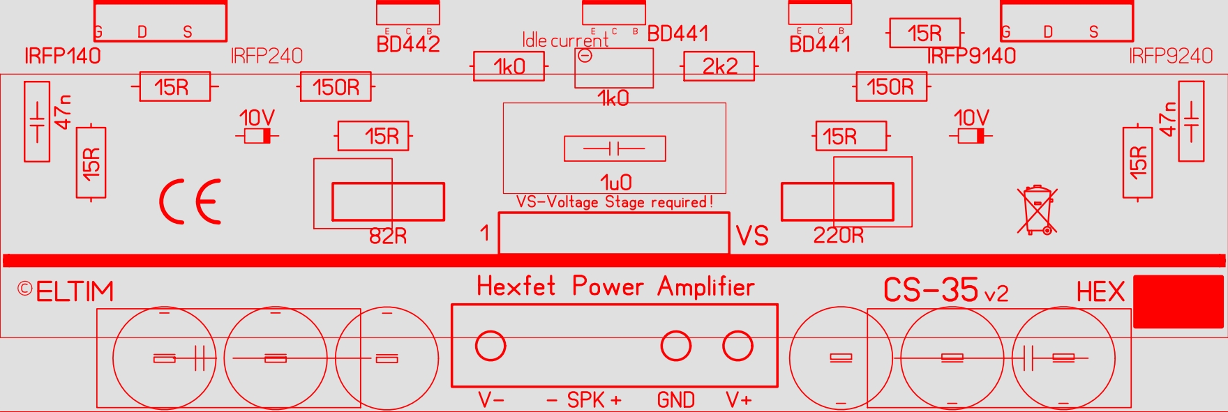 This CS-35 DIY module is the most compact current stage module we have in our program. It can make 30 -180Wrms, depending the power Fet types and supplied power voltages.
