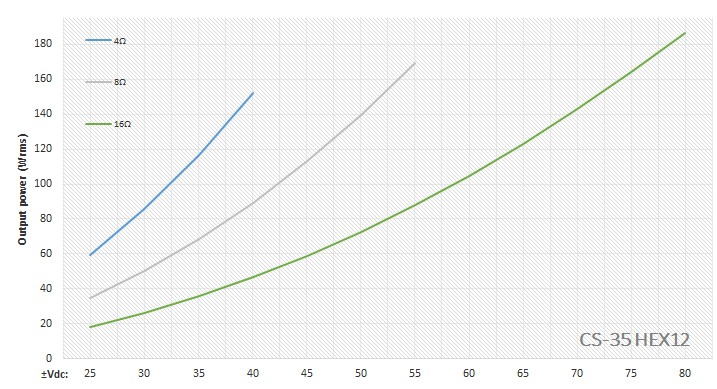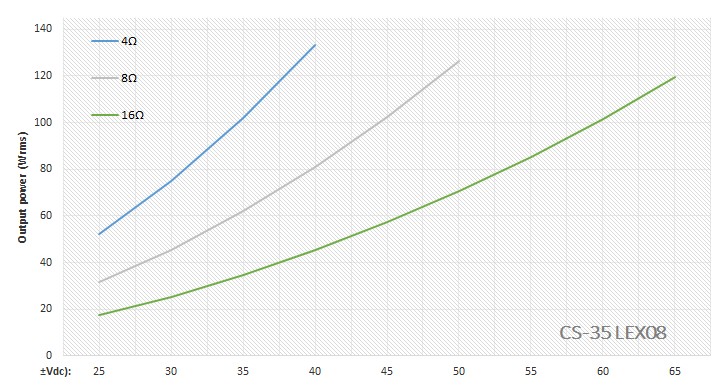 due to its high supply voltage specialised in high ohmic loads up to 180W @ 16ohms loads.