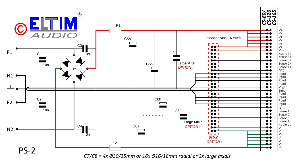 L-mounted Power supply kit for CS-modules, 8A max. Elco's excluded!