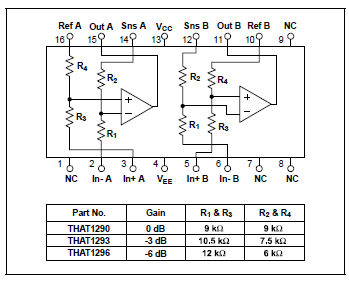 THAT 1296Q16, Dual Balanced Line Receiver, ±6dB, QSOP16