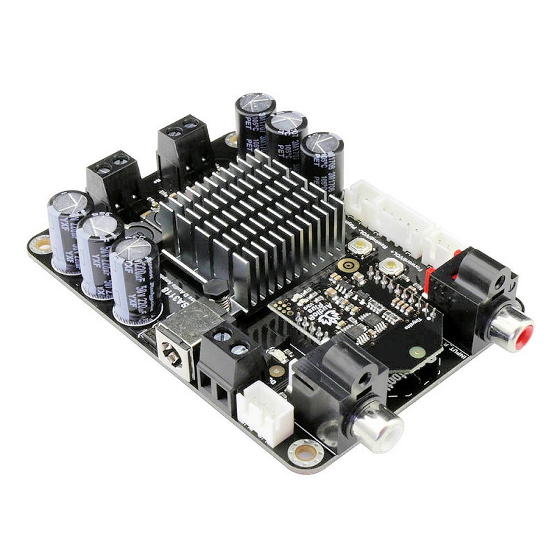 TSA3118 2x50W audio amplifier board with AudioB plus Bluetooth module. It has perfect class-D architecture (Texas Instruments TPA3116D2) and each channel has 50W power output. Both of the channels are capable of outputting nominal power simultaneously and continuously. This board can be powered by any DC10V-24V power supply. It can be used to drive any 4Ω or 8Ω passive speakers. TSA3118 can also be connected with our TSA1000 external audio volume control board. People can adjust the audio volume by rotating the real knob. It's perfect for your Hi-Fi application. You may wish to pair with a mobile phone or a computer, etc.. Power the amplifier board. Use your phone or PC, etc. to search for a new Bluetooth device. The module will appear as "TSA3118". You don't need a PIN, pair it and then you can play music. TSA3118 can automatically detect the Aux in/Line in Audio input. Bluetooth Audio source has a higher priority. When Bluetooth audio is paused or Bluetooth is disconnected, the amplifier will output the Aux in/Line in audio. If you want to manually select the Aux in/Line in and Bluetooth audio source, please choose TSA3116 or TSA3117. Multiple TSA3118 boards can be connected together to become a multi-channel amplifier system. The Audio out port can also be connected with a subwoofer amplifier board.