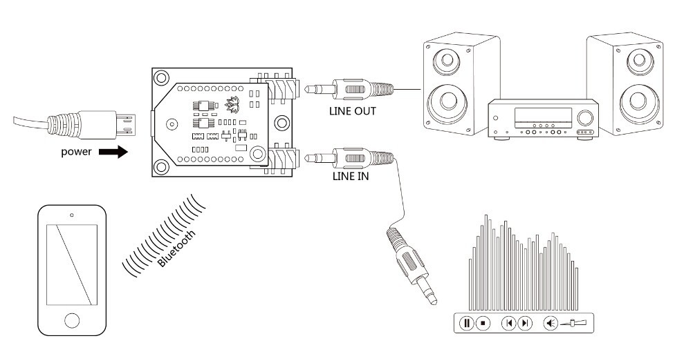 This is digital Bluetooth music receiver connected to the Line-In or Aux input on your home audio system. You can then stream audio from your Bluetooth enabled cell phone or mp3 player to your home audio system. Enjoy the convenience of having your music source in the palm of your hand and listening to it through your home stereo. it comes with a I2S output Bluetooth 5.0 digital AudioB plus Bluetooth module. I2S digital output. Apt-X supported. Based on CSR8675. The base board is a DAC(PCM5122PWR) board which convert the I2S digital audio to analog output.