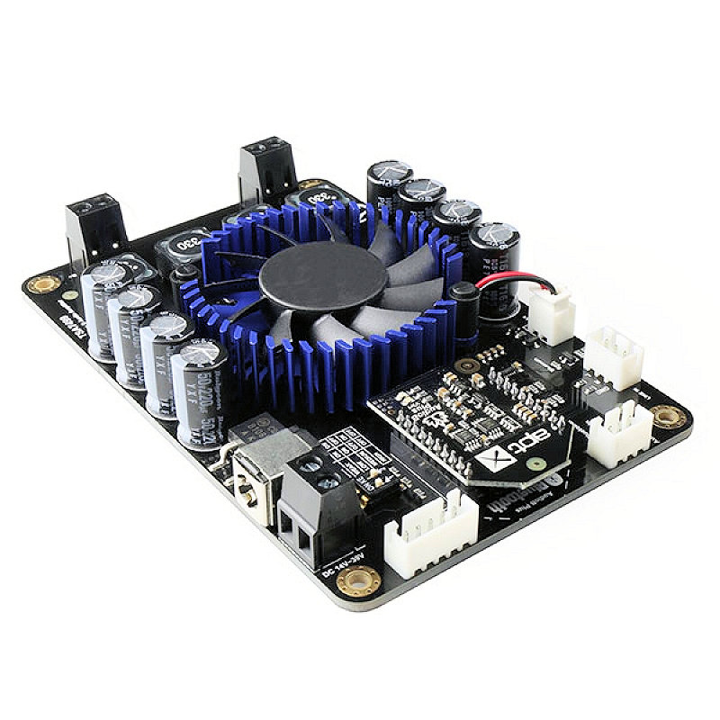 TSA7499B are designed for factory or DIY user. Bluetooth/LINE IN select switch and audio input port are designed as JST connectors. So, user can install this amplifier board in a box and connect an external switch and RCA/3,5mm audio jack plug to make their own audio amplifier. TSA7499B can also connect with our TSA1000 external audio volume control board. People can adjust the audio volume by rotating a real knob. TSA7499B is a 2x100W audio amplifier board with a new AudioB plus Bluetooth module that supports Apt-X. It's integrated ST high performance TDA7498 which support dual channel audio amplification. Both of the channels are capable of outputting nominal power simultaneously and continuously. This board can be powered by any DC14V-39V* power supply. It has a smart cooling system, the fan does not work in normal cases to reduce the noises. The fan only starts when the chip temperature > 65°C. It's perfect for your Hi-Fi application, the audio source can be cable input or Bluetooth. You may wish to pair with a mobile phone or a computer, etc.. Power the amplifier board. Use your phone or PC, etc. to search for a new Bluetooth device. The module will appear as "TSA7499B". You don't need a PIN, pair it and then you can play music.