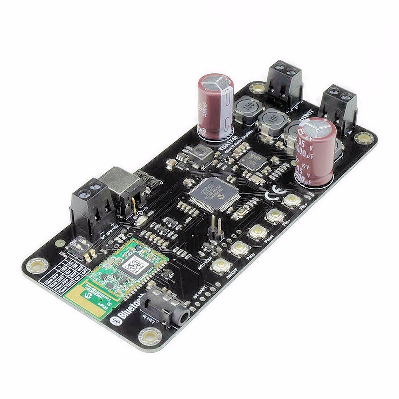 Class-D, Bluetooth, 2x22Wrms/4Ω/10%thd, 20Hz-20kHz, 86% eff.