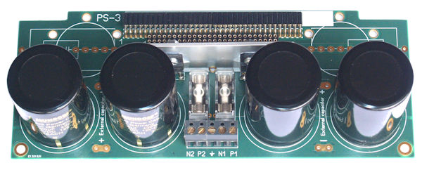 De PS-voedingsmodules kunnen zonder enige bedrading worden aangesloten op ons VS/CS-combinatiepakket, met uitzondering van een geschikte transformator met dubbele secundaire wikkeling. Aangezien we onze versterkers gebruiken als een lineaire klasse A/B versterker met per definitie een rendement van ongeveer 67% op vol vermogen. De transformator heeft derhalve een capaciteit (VA) nodig van ongeveer 150% van het uitgangsvermogen dat u in gedachten heeft. Houd er ook rekening mee dat de gelijkgerichte Vdc (= Vtop) ongeveer 1,43x (= Vrms) is van de vermelde Vac van de transformator! F.e. voor 2x 50Vdc hebt U een 2x 35Vac transformator nodig.