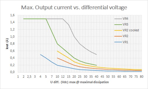 Door slechts twee weerstandwaardes te wijzigen kunnen we iedere gewenste uitgangsspanning leveren, zolang dit max. 40V lager ligt dan de ingangsspanning. Wij leveren standaard de meest voorkomende spanningen; afwijkende spanningen leveren we op verzoek.