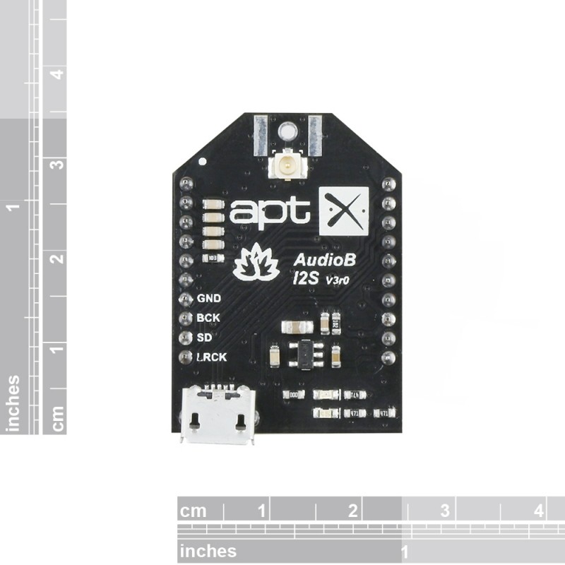 If you want to build a digital Bluetooth amplifier board, AudioB I2S Bluetooth audio receiver module is a good choice for your project. This is a Bluetooth 5.1 stereo receiver module, I2S digital output and music resampling frequency is 48KHz. Apt-X supported. Breakout pins are used to 2x10 2mm space male pins. You can integrate it to your project easily. This module has a U.FL connector. You can connect an external 2.4GHz antenna with it by using a U.FL to SMA cable.