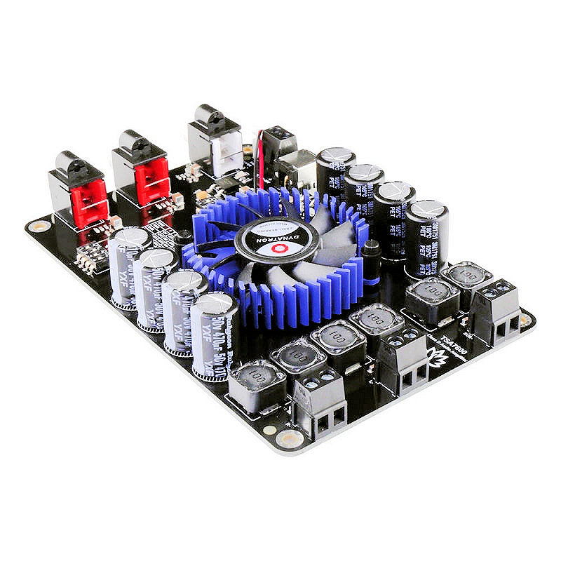 TSA7600 2x100W + 220W audio amplifier board. It has perfect class-D architecture (Texas Instruments TPA3221) and 2 channels have 100W power output and another one channel has 200W power output. All channels are capable of outputting nominal power simultaneously and continuously. This board can be powered by any DC12V-30V power supply. It can be used to drive any 4Ω or 8Ω passive speakers.