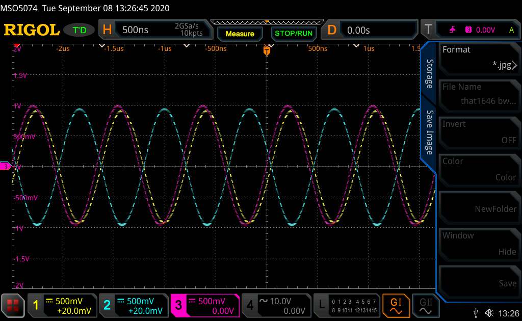 LinBout-1646 running at 1kHz/1V, 0º phase shift from input to + output.